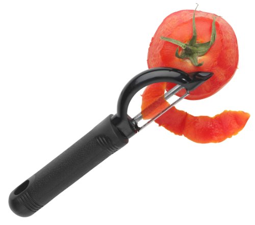 - Features a double stainless steel serrated blade that swivels and conforms to all shapes of fruit and vegetables