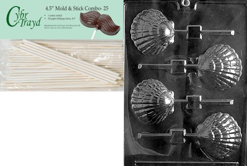 Cybrtrayd 45St25-N021 Shell Lolly Like N003 Nautical Chocolate Candy Mold with 25-Pack 4.5-Inch Lollipop Sticks