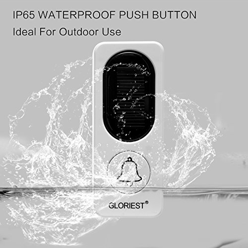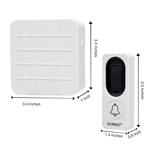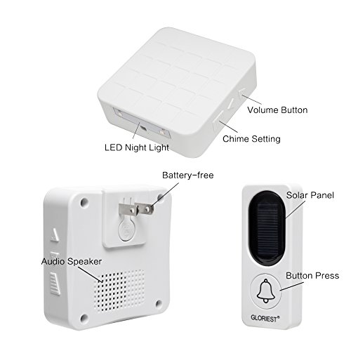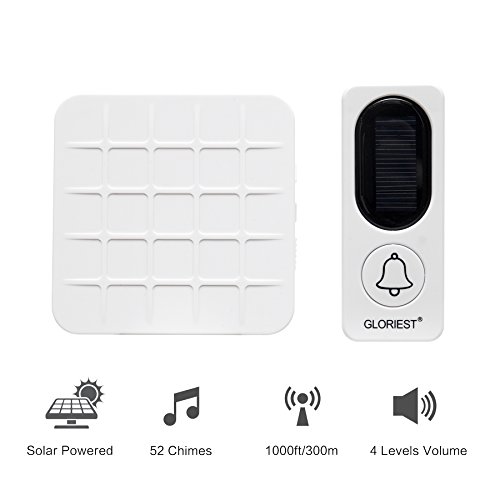 Gloriest Solar Wireless Doorbell, Waterproof Door Chime Kit, Battery-free Doorbell Kit with 1000ft Operating Range, 52 Chimes, 4 Levels Volume, LED Night Light