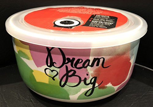 Ciroa Microwaveme Fine Porcelain 7 inch Diameter x 4 inch Deep Microwave Bowl with Silicone Seal Lid DREAM BIG