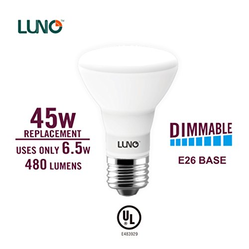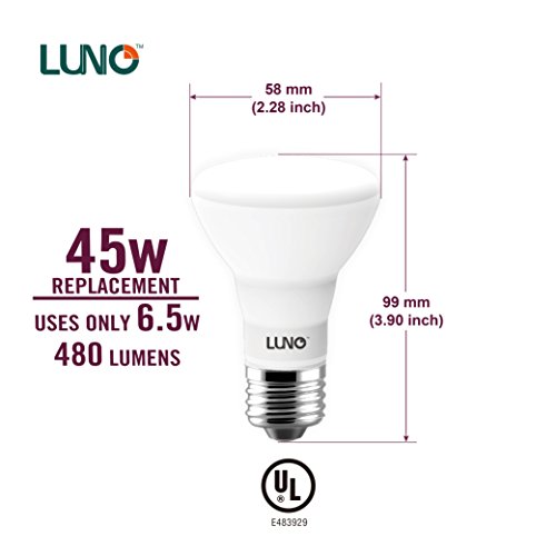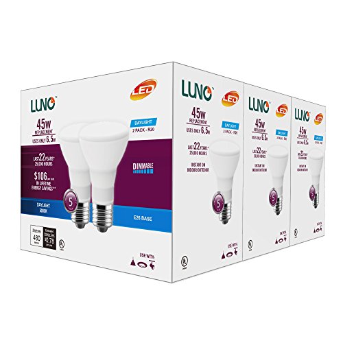 LUNO R20 Dimmable LED Bulb, 6.5W (45W Equivalent), 480 Lumens, 5000K (Daylight), Medium Base (E26), UL Certified (6-Pack)