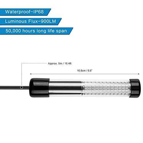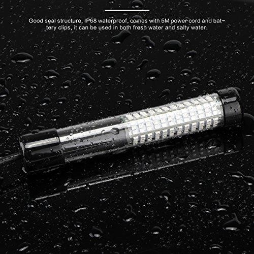 - IP68 WATERPROOF & GREAT SEAL DESIGN: Comes with 5M power cord and battery clips and no leak design, can be used in both fresh water and salty water. Suitable for ship fishing, night fishing, wild fishing, nets fishing and more.