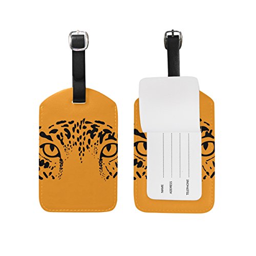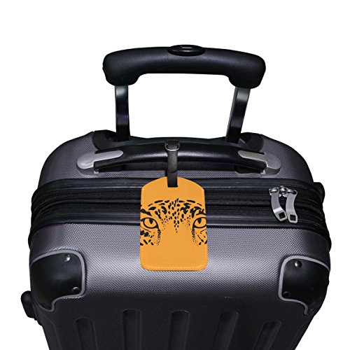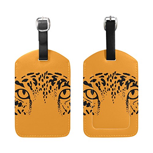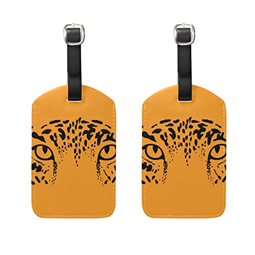 LORVIES Eyes Of Leopard Jaguar On Orange Background Luggage Tags Travel Labels Tag Name Card Ho...