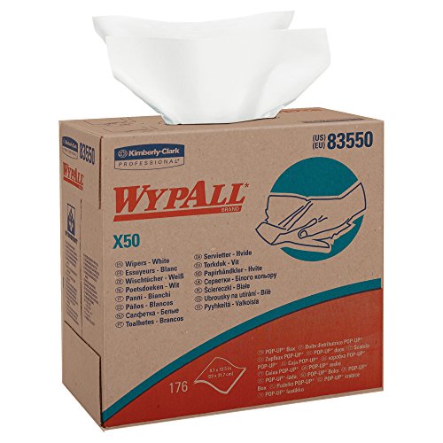 Wypall X50 Disposable Wipers (83550), Strong for Extended Use, POP-UP Box, White, 10 Boxes / Case, 176 Sheets / Box, 1,760 Sheets / Case