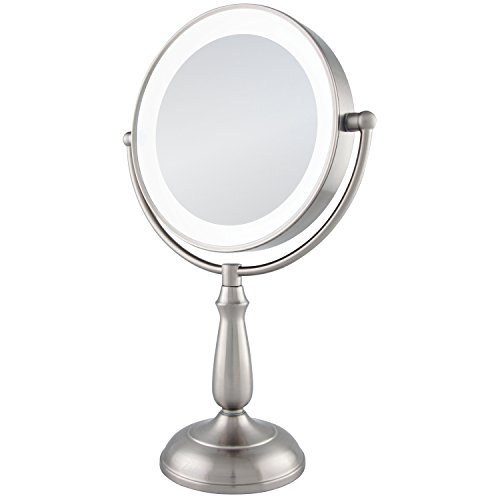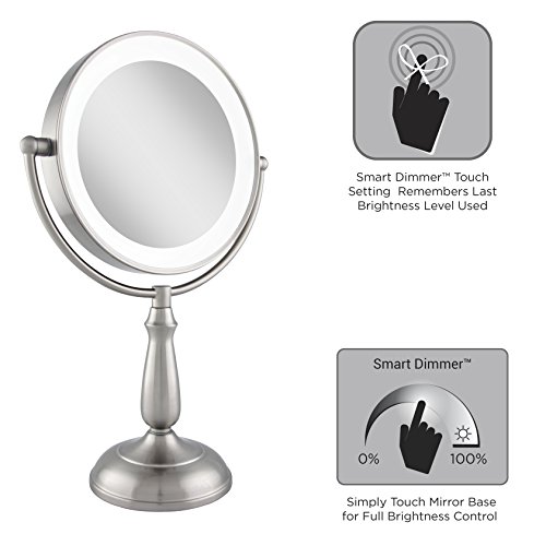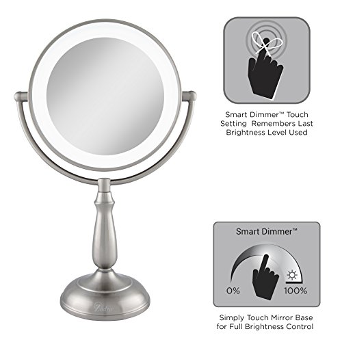 Zadro Satin Nickel Dual Sided Led Lighted Dimmable Touch Vanity Mirror, 12X / 1X Magnification