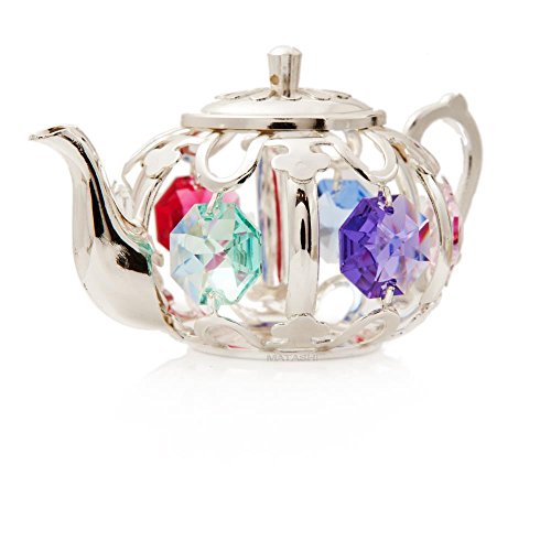 -. Feature : EYE-CATCHING DESIGN:The History of the teapot began around 1500 with the development of the Yixing teapots with a unique purple clay feature. The paradox of every human face being diverse and yet the same seems to apply correspondingly well to teapots. It takes with it a richer history than any other ceramic object in our households and a more potent symbolism. Crafted with quality materials like Silver and studded with precision cut Matashi® crystals. / DIMENSIONS: 3 L x 1.75 W x 1.5 H inches. The size ensures it is the perfect size for any interior design motif, home decor or collection! Spruce up your desk or hang up this stunning piece by the window. / ELEGANT PACKAGING: Comes secured in a velvet pouch within a luxury gift ready box. Write a personal message on the provided gift card and be assured of your product authenticity with the included official Matashi® individually serialized warranty card. / GIFT READY: The perfect gift for any occasion. Give as a gift on Mothers day, Christmas, Valentines day, as a Housewarming present or in any other situation you wish to show someone you love how much he or she means to you. / SATISFACTION GUARANTEED: All Matashi® products are covered by a 100% Money-Back satisfaction guarantee and craftsmanship is guaranteed under a 2 year limited warranty.