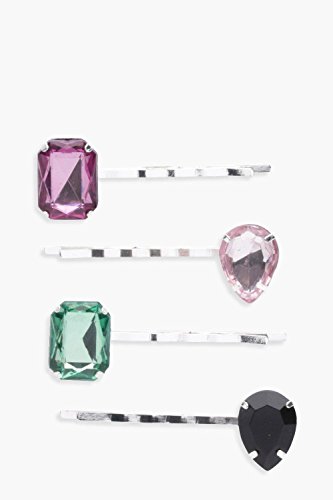 (Boohoo)/Accessories/Hats/DIRECT FROM USA/Boohoo Womens Hannah Stone Jewel Hair Slide 4 Pck