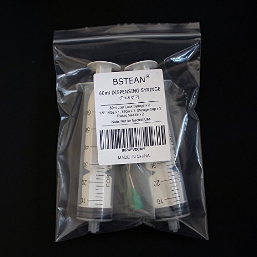 Bstean 60ml Syringe with Blunt Dispensing Needles and Caps (Pack of 2)