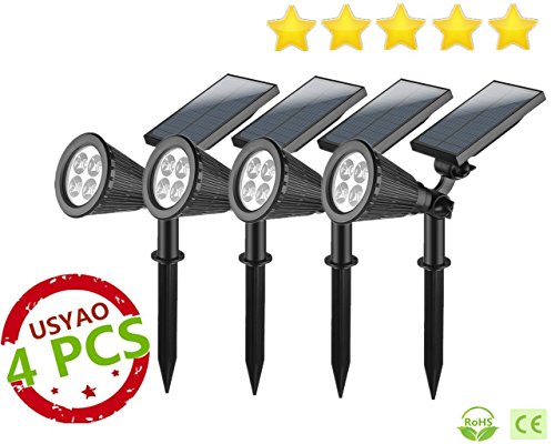 USYAO Spotlight Upgraded 4 LED 200 Lumen Sun-powered Spot Light Integrated Panel and Light, Solar Rechargeable Waterproof Black Color , with Adjustable Angle and Bright Illumination Pack of 4