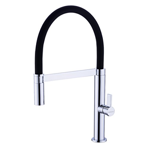 HANEBATH Brass Kitchen Faucet Single Lever Pull-Down with Brass Sprayer Head, Black Silicone and Chrome Kitchen Sink Faucets