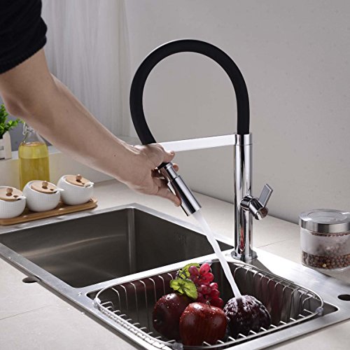- Flexible Spout allows you to pull-down and reach all corners of your sink. Silicone sleeve makes it comfortable to touch and gives you a good grip.