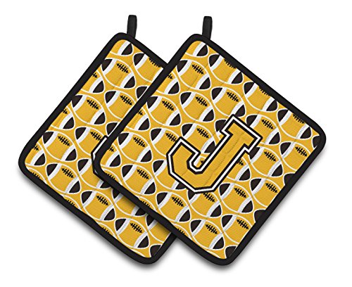 Caroline's Treasures Letter J Football black, Old Gold & White Pair of Pot Holders CJ1080-JPTHD, 7.5HX7.5W, Multicolor