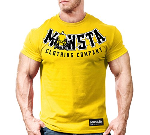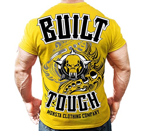 Binding : Apparel Product Description Short-sleeve yellow t-shirt for the hard-core bodybuilder, powerlifter or weightlifter alike. The "MONSTA" artwork flows down the front of the shirt while Built Tough: Train Hard (2009) and scull with wings takes up the back. If you push the limits like you push the iron then Monsta Clothing bodybuilding, powerlifting, weightlifting, workout clothes, and overall fitness apparel is for you. WARNING! You just might unleash the beast. 0
