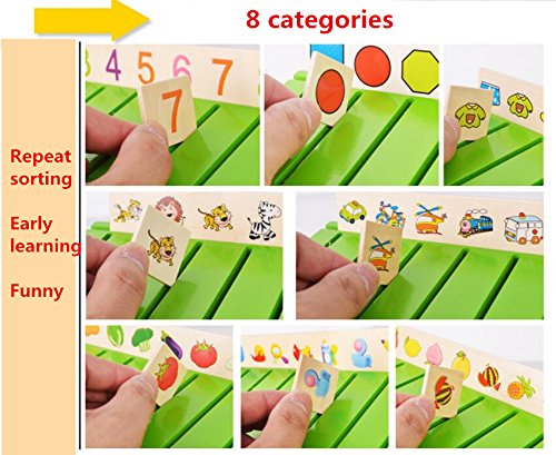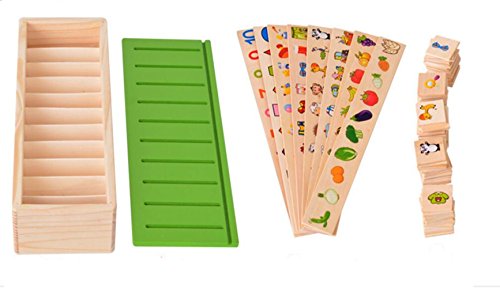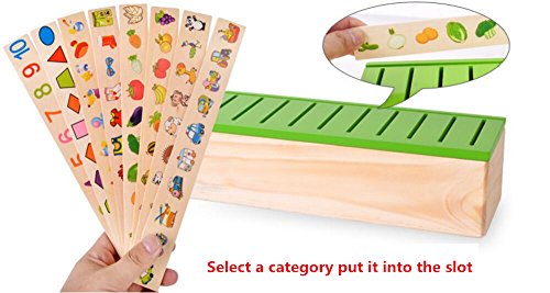 (Elloapic)/Puzzles/Brain Teasers/DIRECT FROM USA/Wooden Learning Card sorting box with green plastic cover, 8 sorting Categories: Vegetables, fi...