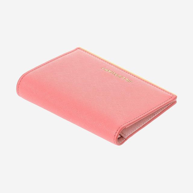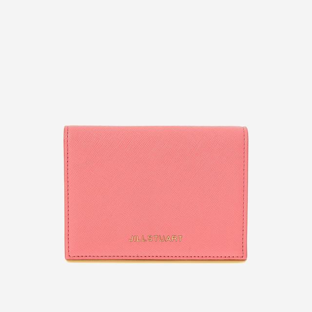 화사한 컬러감으로 여성스러운 외관을 보여주며 하단의 로고와 골드 바 장식으로 포인트를 준 반지갑입니다.