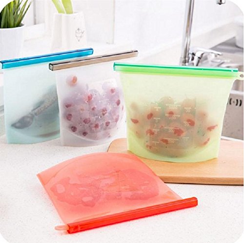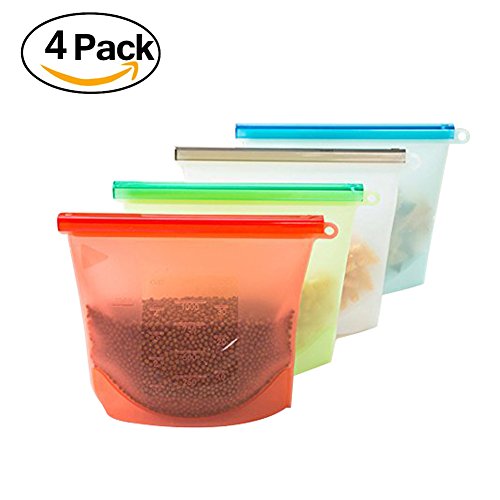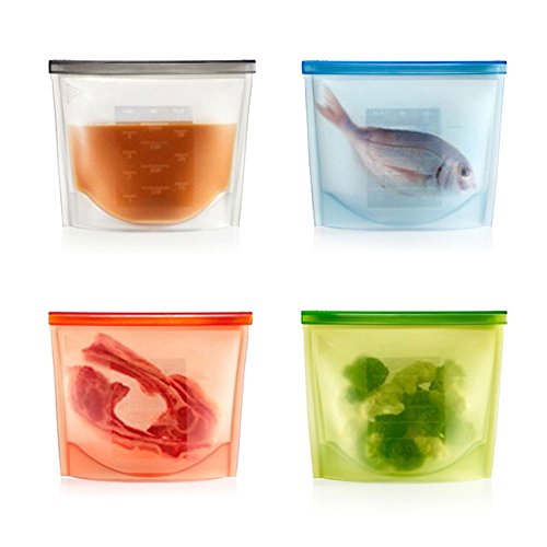 Reusable Silicone Food Preservation Bag for Vegetable Meat Fruits Airtight Container, Kitchen Cooking Seal Storage Bags, 4 Pcs