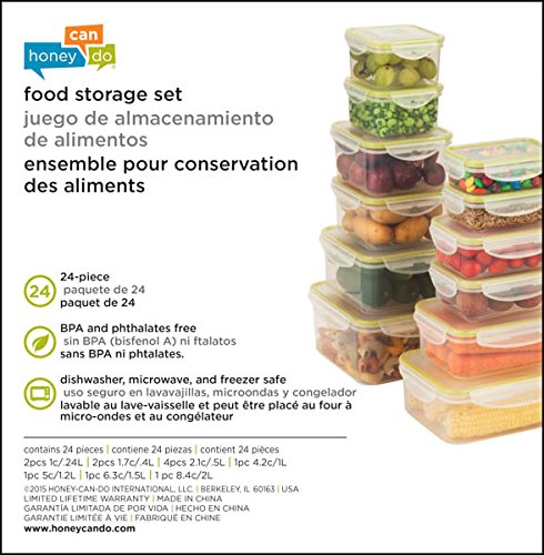 Honey-Can-Do KCH-03827 Snap-Tab Rectangular Food Storage Container Kit, 240ml to 1.5-Litre, 12-Pack