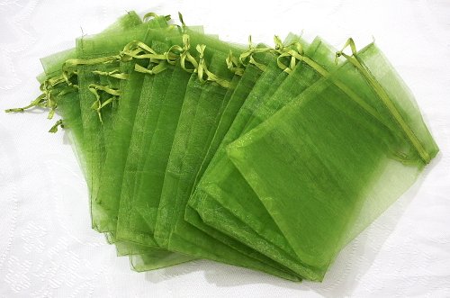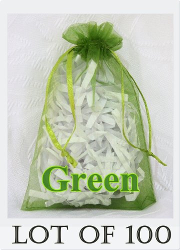 AIEDE 100 pcs GREEN Organza Drawstring Pouch Gift Bags - Jewelry Pouches, Weddings, Party Favors, Shops, Wholesale Lot - 4.3" x 6.5