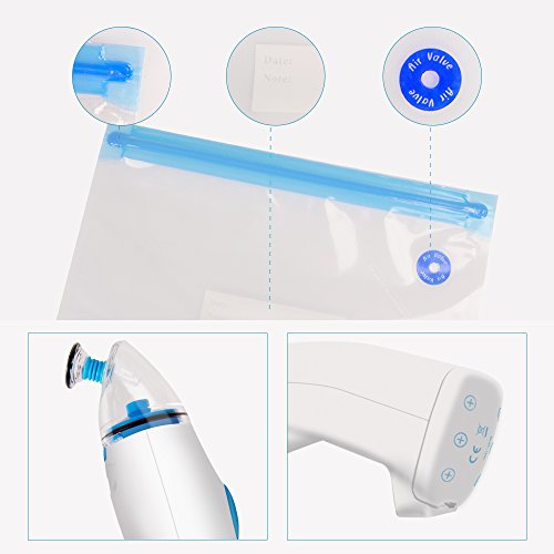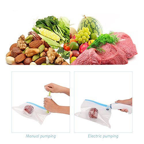 EASY OPERATING: To seal your food, simply click the valve on to any bag. Seal the bag by locking a seal across the top. Next, attach the pump to the valve, and use the electric pump to vacuum out the air, food within will be better preserved.