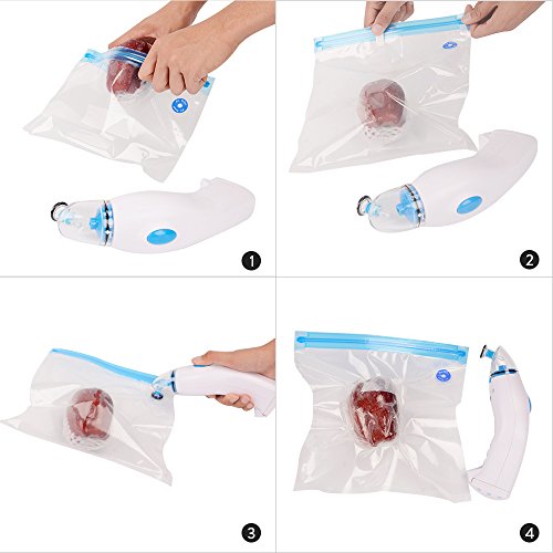 HEALTHY MATERIAL: The vacuum bags are made of high-end polyethylene, which is BPA free and FDA approved. You can reuse all the vacuum bags if you do operate the whole vacuum set carefully and correctly.