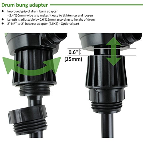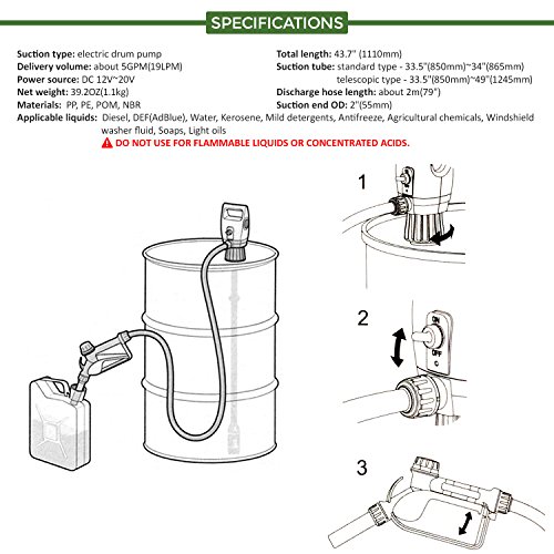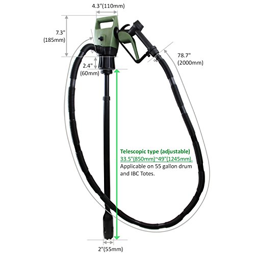 TERAPUMP TReDRUM 33.5 - 49" IBC Totes Telescopic Plug-In Electric Drum Barrel Pump (option - Rechargeable Battery Set / Car Bettery DC cable) for DEF, Diesel, Water(not for drinking water), Kerosene, Antifreeze, Windshield Washer Fluid, Mild Detergent, Ag