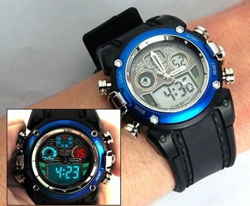 OHSEN casual men's sports watch watch analog digital display waterproof timer alarm stopwatch backlight function cos time-2 (Blue)