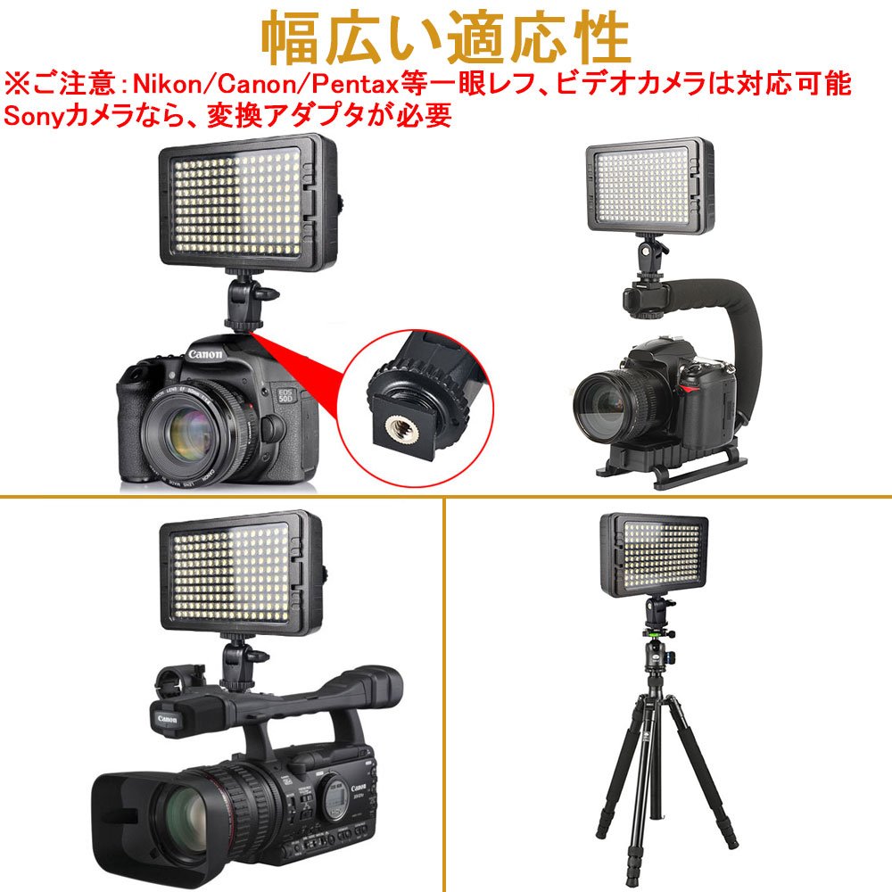 (Please note: Nikon, Canon single lens reflex, compatible with video cameras, Sony requires a conversion plug.)