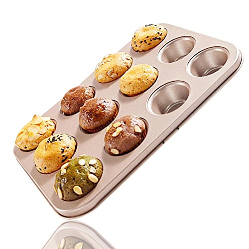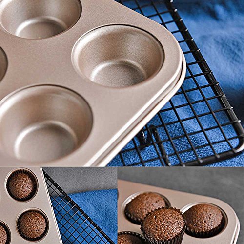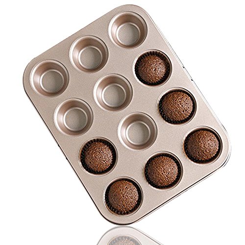 Mini Muffin Pan 12 Cup Nonstick Carbon Steel Cupcake Pan (Gold)