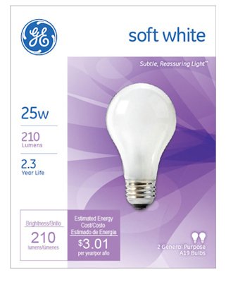 Ge Soft White Light Bulbs 25 W 210 Lumens A19 Med Base 4-1/4 In. Pack / 2