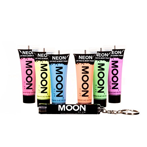 -. Title : Moon Glow - Pastel Neon Blacklight UV Face & Body Paint - 0.42oz Set of 6 - includes UV Keyring