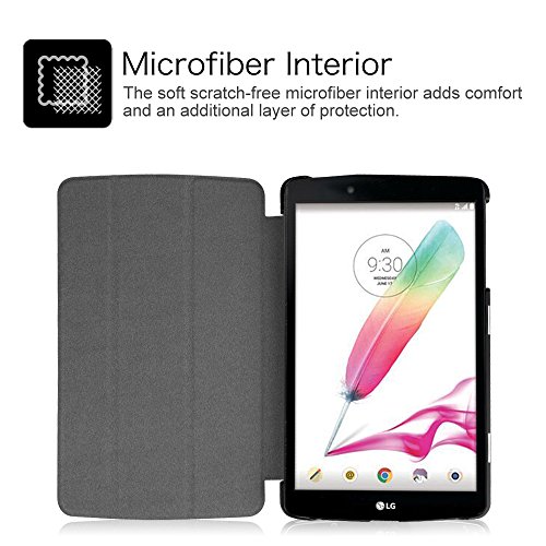 Protect your tablet with this Fintie SmartShell Leather Case at all times! The Fintie LG G Pad F 8.0 AT&T V495/T-Mobile V496/US Cellular UK495/G Pad 2 8.0 V498 Tablet Smartshell case sports a simple and classy design. The back shell is made from durable polycarbonate material so you do not need to worry about any damages. It offers an easy clip-on application. Because the cover is uniquely designed to flip back and transform the case into a comfortable viewing stand that offers two different viewing angles, this capability allows the viewer to use the tablet hands-free. The Fintie SmartShell Leather Case comes in a variety of bright, fun colors, the widest selections to suite your taste. It offers an ideal way to protect your tablet wherever you go.
