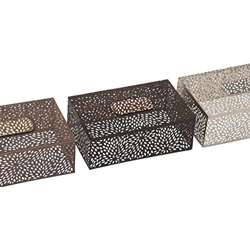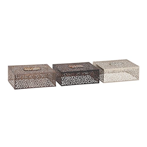 Deco 79 54223 Rectangular Iron Tissue Holders (Set of 3), Brown/Blackandsilver
