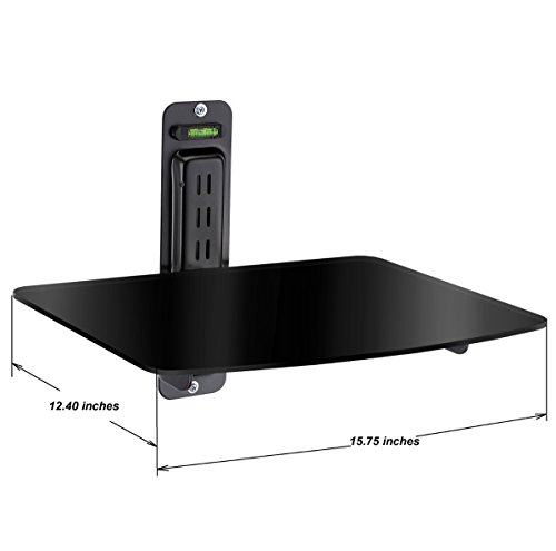 -. Feature : Solid, heavy-gauge steel construction with durable product coated finish / Adjustable shelf / 6mm tempered glass shelf / Supports up to 22 lbs / Installation is fast and easy & includes a built-in leveler