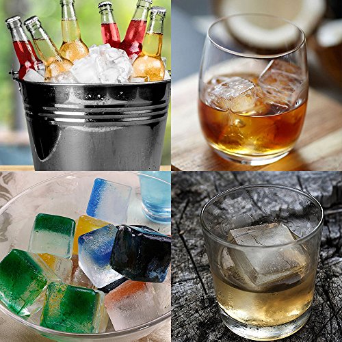 PERFECT ICE CUBE SIZE MAKES PERFECT ICE SQUARE CUBES FOR YOUR GLASS - Perfect cube size design for Whiskey, Highball, Cocktail and Hurricane Glasses, Adds a touch of class to Bourbon and Scotch drinks; Great for Iced Coffee and for long lasting iced Tea; Ideal for kids' popsicles; Elegant for Punch Bowls; Fill ice ball mold with fruit to enhance any beverage