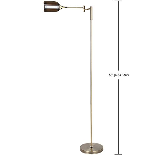 Brightech Leaf LED Reading and Task Floor Lamp- Dimmable 12.5 Watt LED Standing Pharmacy Lamp Pivoting Head for Living Room Sewing Bedroom Office - Antique Brass