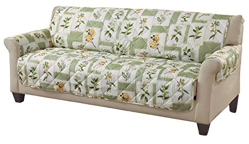 -. Feature : Protect your furniture from wear and tear, pet hair and more with this quilted furniture cover / Overlapping floral patchwork pattern atop a cream background / Machine washable. Polyester and olefin / Colors available in Green or Blue / Sizes available to fit a Chair, Recliner, Loveseat or a Sofa