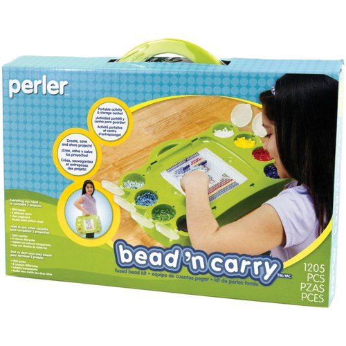 Binding : Toy Product Description PERLER-Bead N Carry Fused Bead Kit. This great set will provide hours of entertainment for kids! The activity center is made of durable plastic and has a molded-in handle on the top making it great for on-the-go fun! It features a snap-close lid that keeps unfinished projects intact plus there are eight mini compartments for holding beads each with its own snap-shut lid. There are enough supplies to complete two projects including one activity case one clear square pegboard 1200 beads 150 each of eight colors one double-sided pattern sheet ironing paper and instructions. Recommended for ages 6 and up. Imported. 0