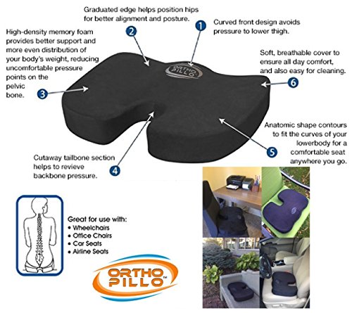 Studio : Surplus Bargains Publisher : Surplus Bargains Binding : Health and Beauty Product Description OUR BELIEF We get great joy out of designing a comfortable and ergonomic seat cushion. We have a vision where the ORTHO-PILLO provides life-enhancing benefits, healing and discovery ERGONOMIC AND VERSATILE DESIGN FOR OPTIMAL COMFORT LOWER BACK, SCIATICA AND TAILBONE PAIN RELIEF. HEAVY DUTY SUPPORT FOR HEALTHY POSTURE LIGHTWEIGHT, HIGH QUALITY MEMORY FOAM WITH COVER GREAT FOR EVERYONE - For desk jockeys, long haul drivers, globe trotters, and everyone in between that wants a more comfortable place to sit. 0