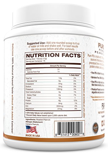 Our PURE Powdered Peanut Butter is All Natural, Non GMO, Gluten Free, Soy Free and Preservative Free! No added sugar, salt or palm oils w/ Only 1 ingredient! - Mixes easily with any beverage! The perfect peanut butter powder for smoothies, drinks or even baking!