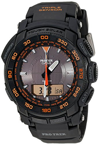 -. Binding : Watch -. Brand : Casio -. Color : black -. Department : mens -. EAN : 0079767625795 -. Feature : Tough Solar Power; Digital Compass (second hand acts as compassneedle); Altimeter; Altimeter Memory; Barometer; Thermometer; 100M Water Resistant; Low Temperature Resistant (-10C/14F); Ful lAuto LED Light with After glow; Neo-brite Luminous Hands and Markers; World Time; 29 times zones (29cities+UTC); city code display; day light saving on/off; 5 Daily Alarms; Hourly Time Signal; 1/100 second stop watch / Countdown Timer; Full Auto Calendar (pre-programmeduntiltheyear2099); 12/24 Hour Formats; Button operation tone on/off; Battery Power Indicator; Power Saving Function; Storage Battery: Solar Rechargeable Battery; Approx. battery life: 6 months on full charge (without further exposure to light); Module 5213 -. Label : Casio -. Manufacturer : Casio -. Model : PRG550-1A4 -. MPN : PRG550-1A4 -. PackageQuantity : 1 -. PartNumber : PRG550-1A4 -. ProductGroup : Watch -. ProductTypeName : WATCH -. Publisher : Casio -. ReleaseDate : 2013-04-01 -. Size : NO SIZE -. Studio : Casio -. Title : Casio Men's PRG550-1A4 Pro Trek Triple-Sensor Tough Solar Analog-Digital Sport Watch -. UPC : 079767625795