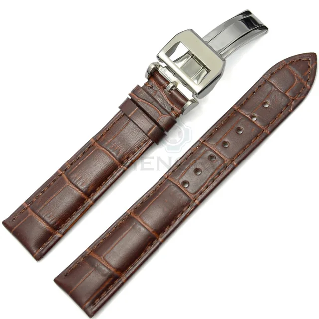 | [해외]줄 19 20 21 22 미리메터 남성 블랙 브라운 정품 가죽 시계 스트랩 밴드 시계 액세서리 금속 스틸 배포 걸쇠 |