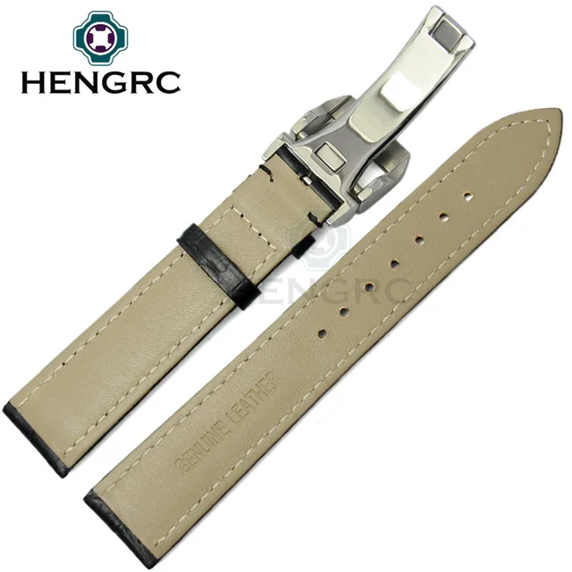 HENGRC 줄 19 미리메터 20 미리메터 21 미리메터 22 미리메터 남성 블랙 브라운 정품 가죽 시계 스트랩 밴드 시계 액세서리 금속 스틸 배포 걸쇠 항목 설명