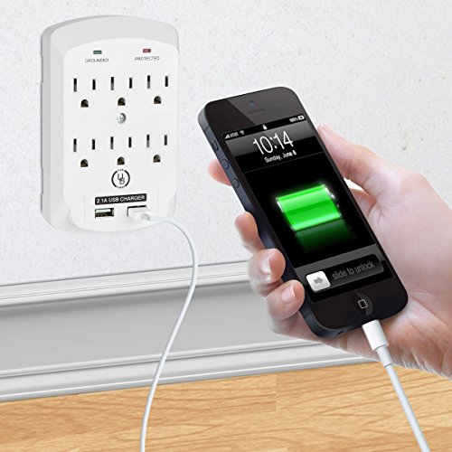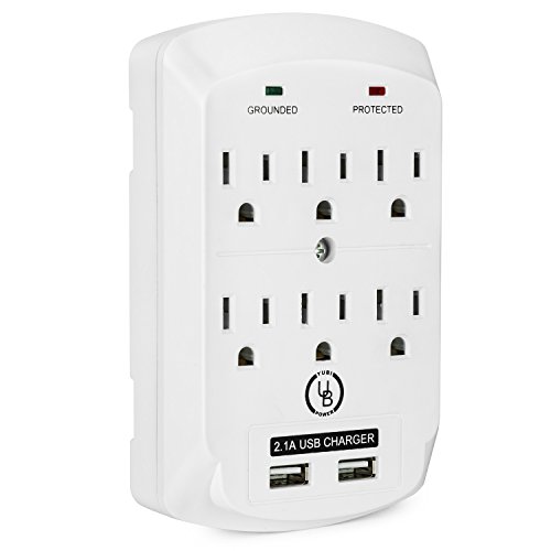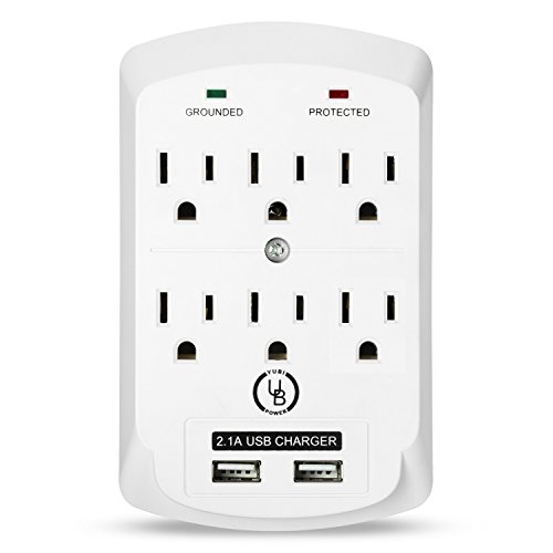 Yubi Power 6 Outlet Power Plug Surge Protector Wall Tap with 2 USB Ports 2.1A 300 Joules - White - ETL Listed