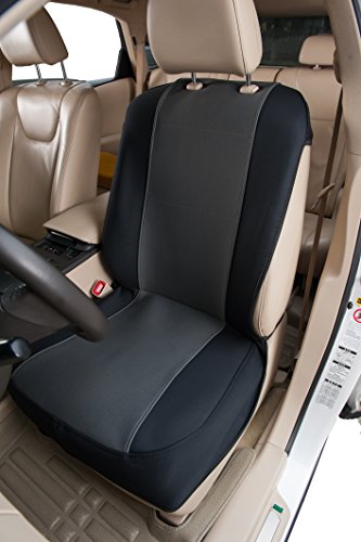 Jaybally neoprene seat covers designed to fit most bucket front seats, such as cars, trucks, suvs and vans. Our available color are black, black/red, black/charcoal, black/beigeIt is easy to clean with a damp cloth or towel