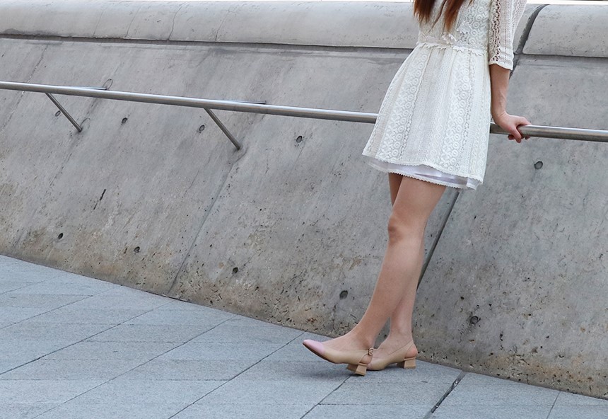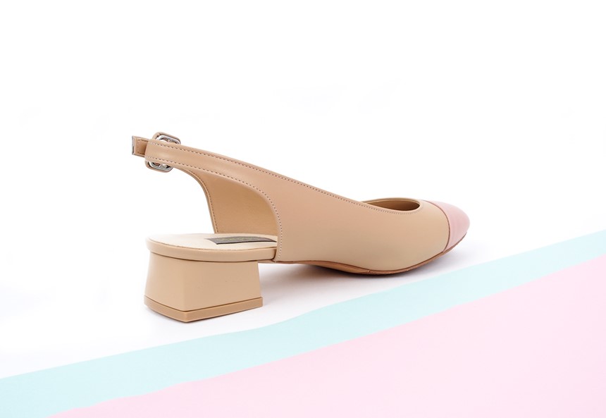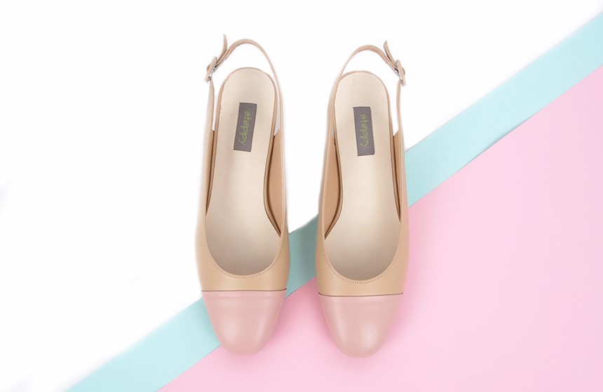 베이지핑크 러블리 미디힐 슬링백