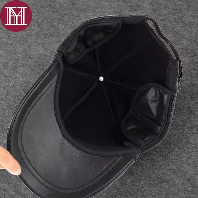 2017 새로운 남자 진짜 가죽 귀 모자 남성 골프 모자 남성 캐주얼 야구 100% 정품 양모 캐주얼 모자 조절
