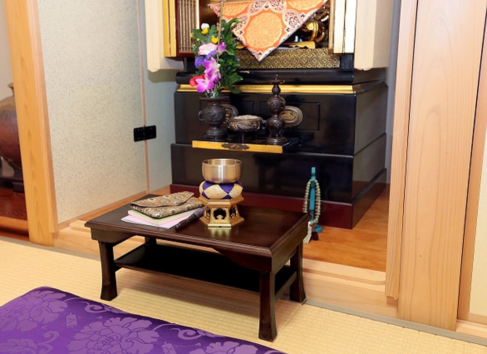 As a foster house in front of the Buddhist altar, a mini table for reading, as a cooking table