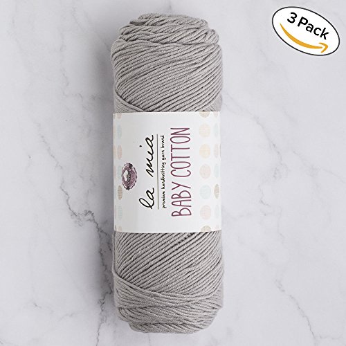 3 Skein La Mia Baby 50% Cotton Total 10.5 Oz Each 3.5 oz (100 g) / 218yd (200m), Medium, Worsted, Super Soft Yarn, Best For Baby and Amigurumi, Grey - L031