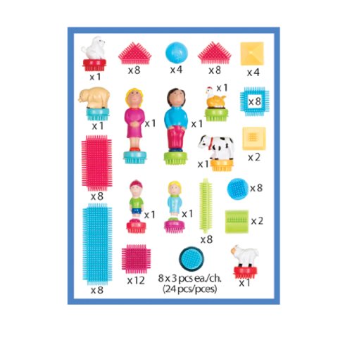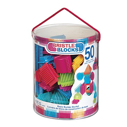 Bristle blocks feature soft, interlocking bristles that stick together at any angle for frustration-free building.