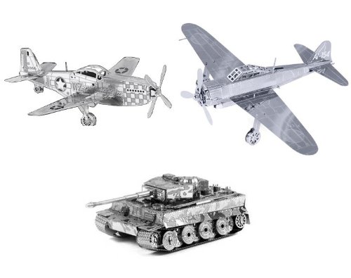Nano Puzzle Collection - WW2 Theme- P-51 Mustang, Zero Fighter & Tiger 1 Tank